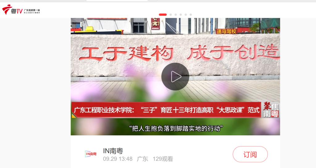2025年9月29日《粵TV》播出《廣東工程職院:“三子”育匠 十三年打造高職“大思政”范式》,報(bào)道了我校大思政課與人才培養(yǎng)深度融合相關(guān)育人舉措。