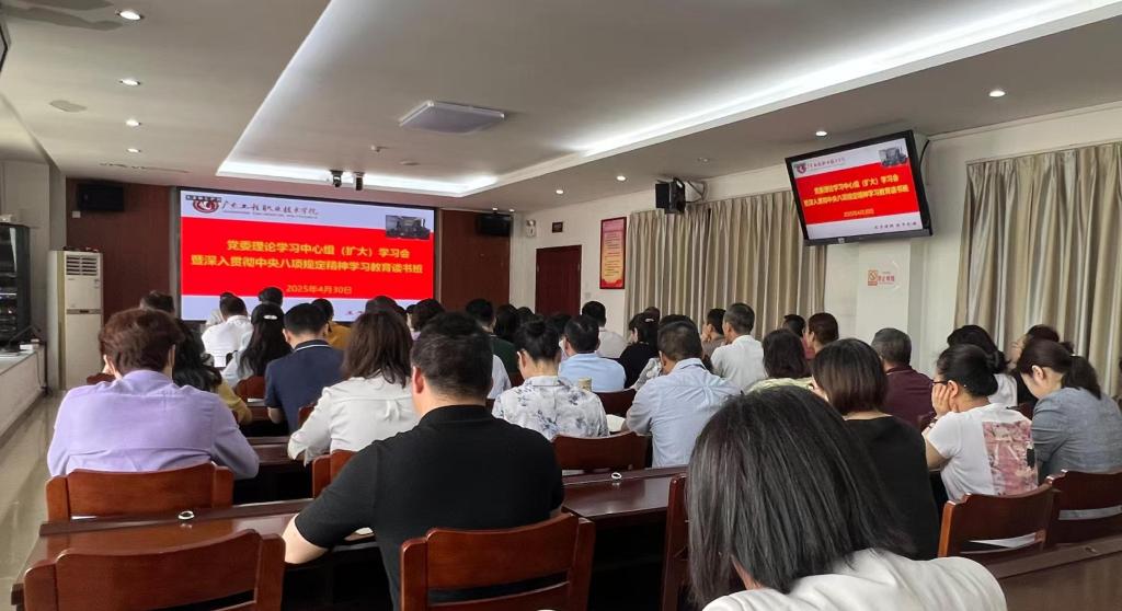 4月30日上午,學(xué)校召開黨委理論學(xué)習(xí)中心組(擴(kuò)大)學(xué)習(xí)會(huì)暨深入貫徹中央八項(xiàng)規(guī)定精神學(xué)習(xí)教育讀書班,深入學(xué)習(xí)《中國共產(chǎn)黨章程》、中央八項(xiàng)規(guī)定及其實(shí)施細(xì)則精神,推進(jìn)作風(fēng)建設(shè)常態(tài)化長效化。學(xué)校黨委書記葉忠明主持學(xué)習(xí)會(huì),全體校領(lǐng)導(dǎo)和中層干部參加了學(xué)習(xí)會(huì)。學(xué)校黨委副書記、紀(jì)委書記徐振昌,黨委副書記方燕,黨委委員、副校長吳志敏,黨委委員、副校長張小廣,黨委委員、副校長張永強(qiáng)談了學(xué)習(xí)體會(huì)。會(huì)議采用視頻連線方式在廣州校區(qū)和省職教城校區(qū)同步舉行。