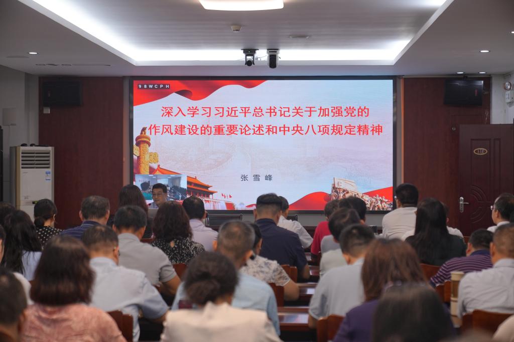 “中央八項規(guī)定自出臺后,帶來的黨風(fēng)政風(fēng)社風(fēng)民風(fēng)變化,深刻影響和改變著中國。”張雪峰教授以《深入學(xué)習(xí)習(xí)近平總書記關(guān)于加強(qiáng)黨的作風(fēng)建設(shè)的重要論述和中央八項規(guī)定精神》為題,從“新時代加強(qiáng)黨的作風(fēng)建設(shè)的重要性和必要性”“中央八項規(guī)定是改進(jìn)作風(fēng)的切入口和動員令”“把深入貫徹中央八項規(guī)定精神學(xué)習(xí)教育做深做實(shí)”三個方面與大家深入學(xué)習(xí)習(xí)近平總書記關(guān)于加強(qiáng)黨的作風(fēng)建設(shè)的重要論述和中央八項規(guī)定及其實(shí)施細(xì)則精神,通過違反中央八項規(guī)定精神的典型案例剖析,深刻闡述了在全黨開展深入貫徹中央八項規(guī)定精神學(xué)習(xí)教育的重要意義,從學(xué)有質(zhì)量、查有力度、改有成效、開門教育等方面分析了如何做深做實(shí)深入貫徹中央八項規(guī)定精神學(xué)習(xí)教育。整場報告主題鮮明、邏輯嚴(yán)謹(jǐn)、內(nèi)容豐富,既有理論的高度,又有很強(qiáng)的實(shí)踐指導(dǎo)性,為我們進(jìn)一步推進(jìn)深入貫徹中央八項規(guī)定精神學(xué)習(xí)教育起到了很好的推動作用。